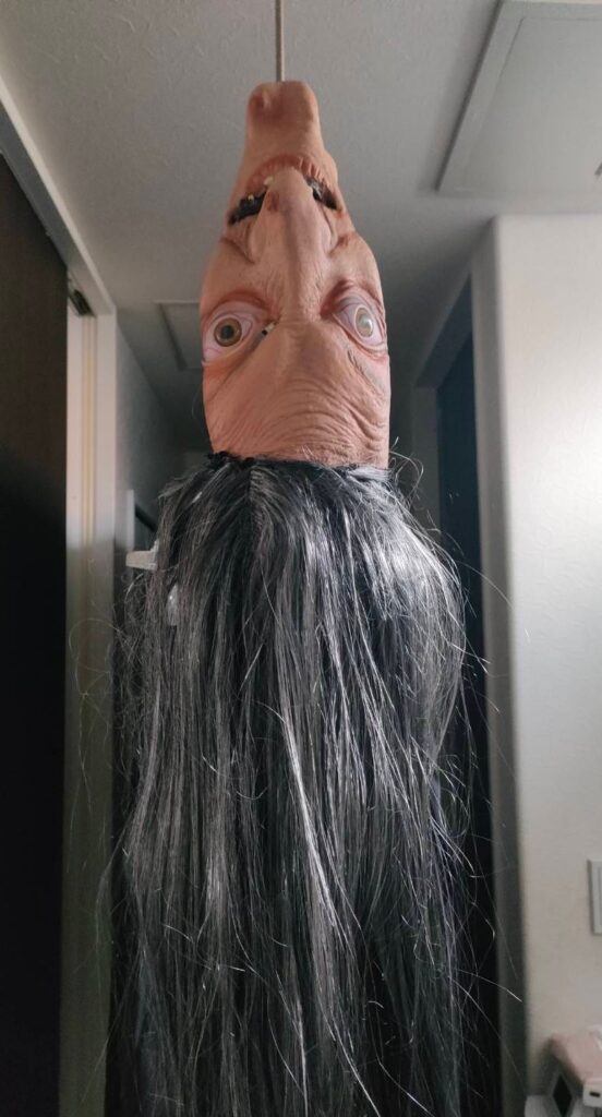 この魔女のお面を使う前に洗って干していたのですが、、、