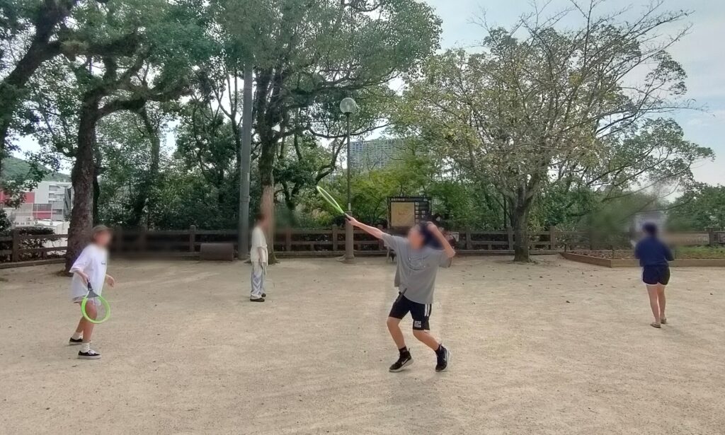 バドミントンは安いラケットとシャトルなので思うように飛ばないのですが、それも楽しそう(≧▽≦)上手に続ける子もいましたよ!!